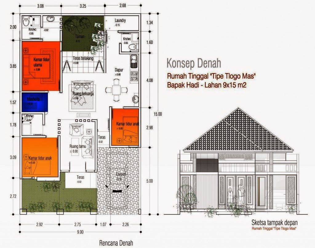 Denah Rumah Sederhana Untuk 1 2 3 4 Kamar Tidur Dan Tipe 36 Ndik via ndikhome.com
